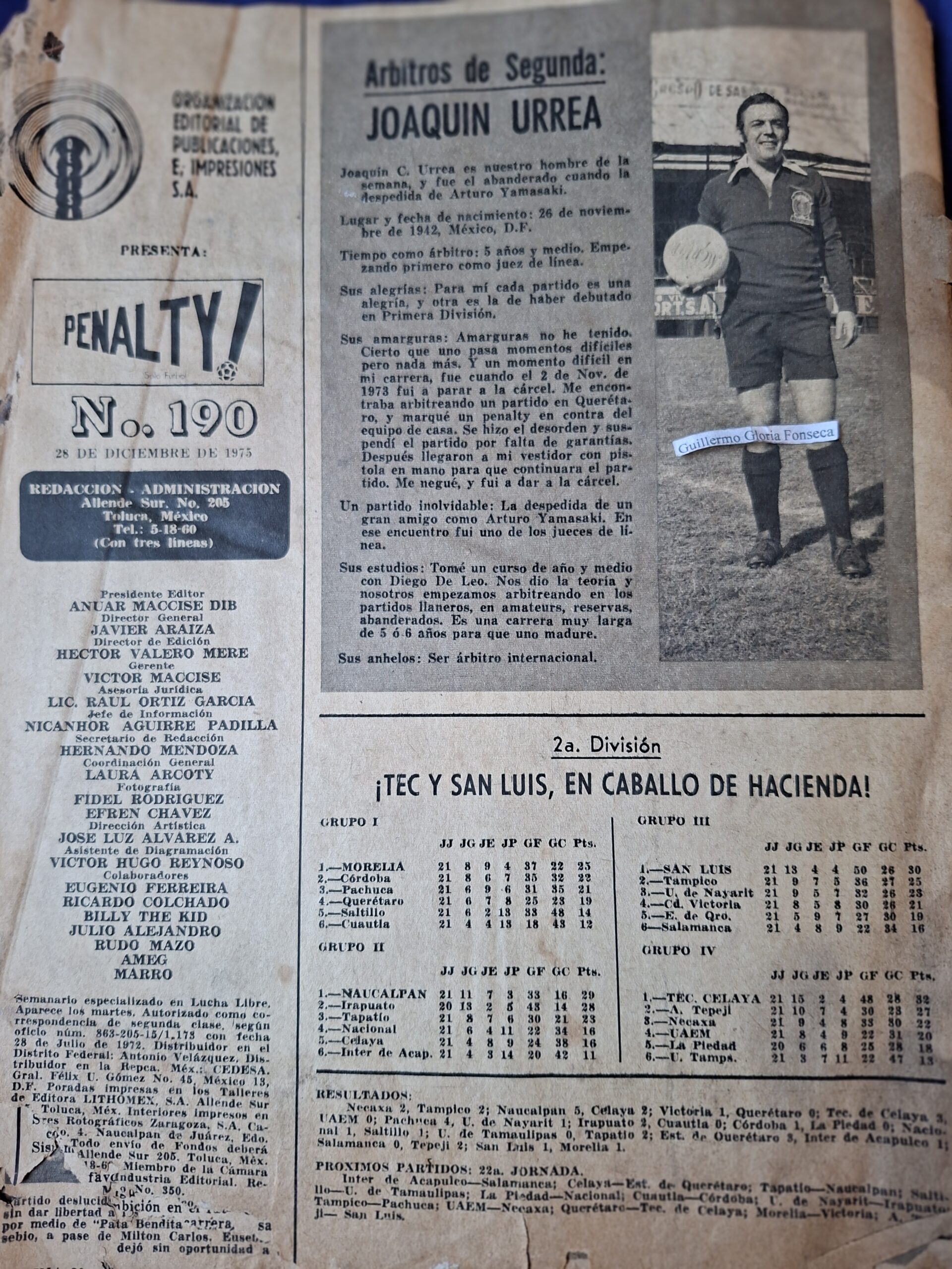 Publicado en PENALTY Revista - N.190 - 28 de Diciembre de 1975