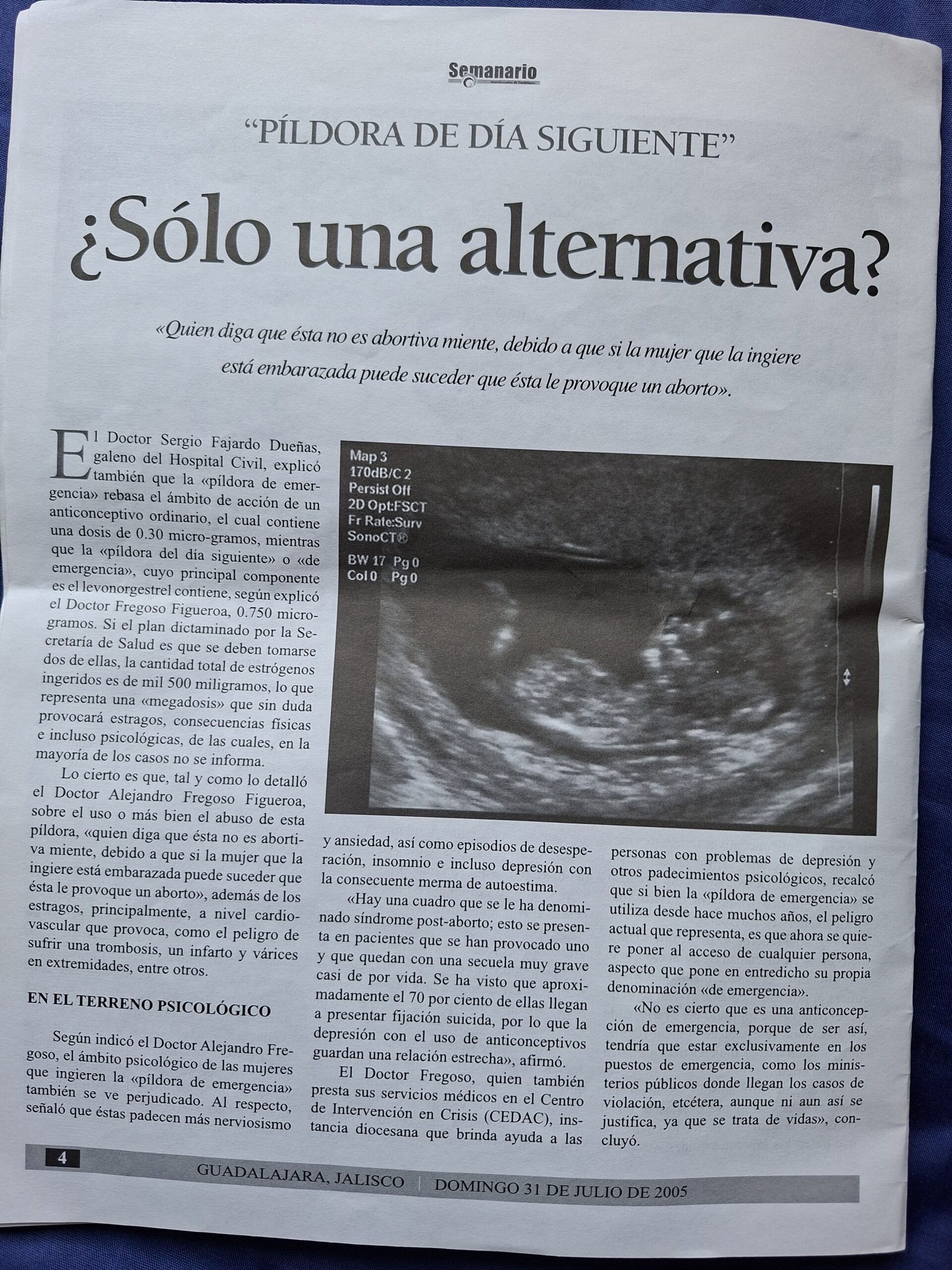 - Amenaza contra la Vida -» PÍLDORA DEL DÍA DESPUÉS » – Semanario , Página 4 – Domingo 31 de Julio 2005