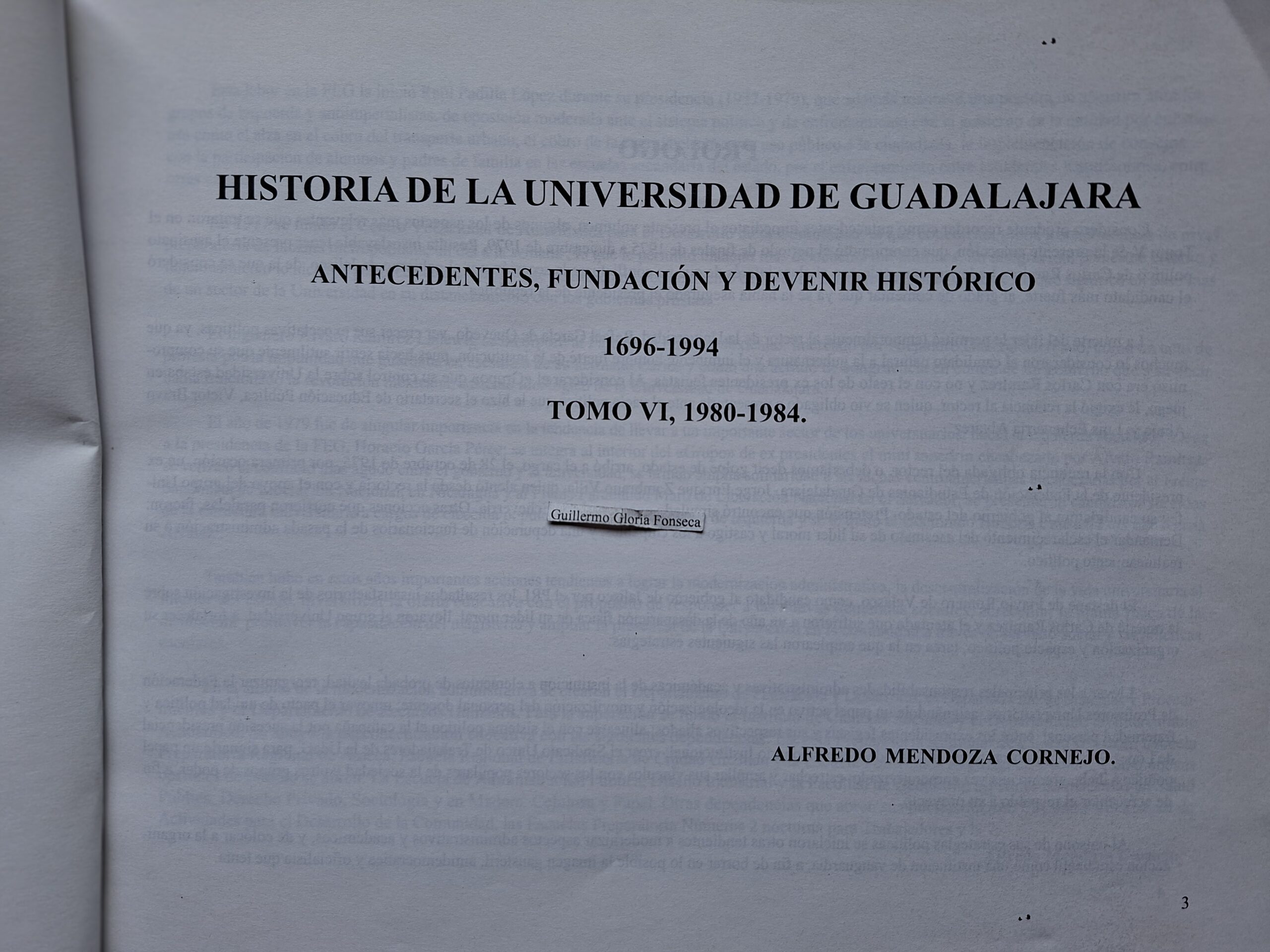 - UNIVERSIDAD DE GUADALAJARA Historia , Página 3 – Fundación 1696 – 1994 TOMO VI 1980-1984