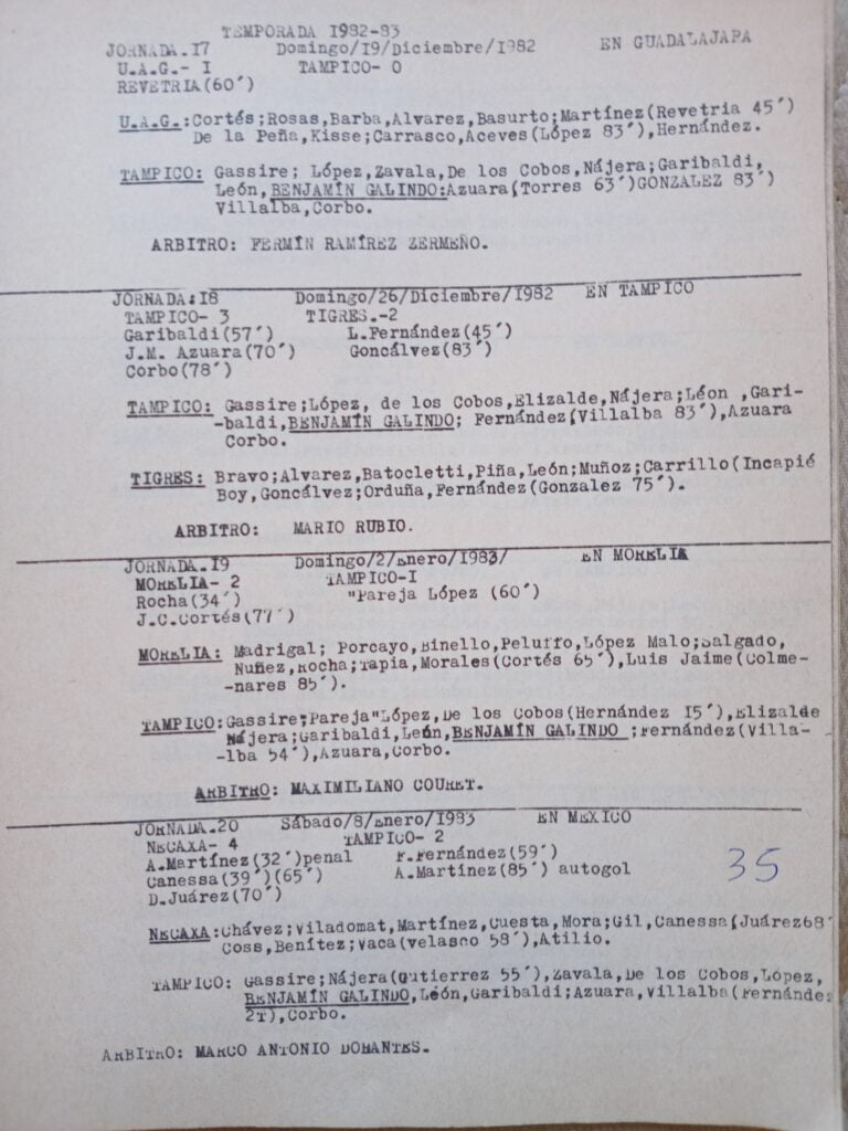 BENJAMIN GALINDO MARENTES – Estadística – Desde la Temporada 79-80 a la 89-90 Jornada 19 , Página 36
