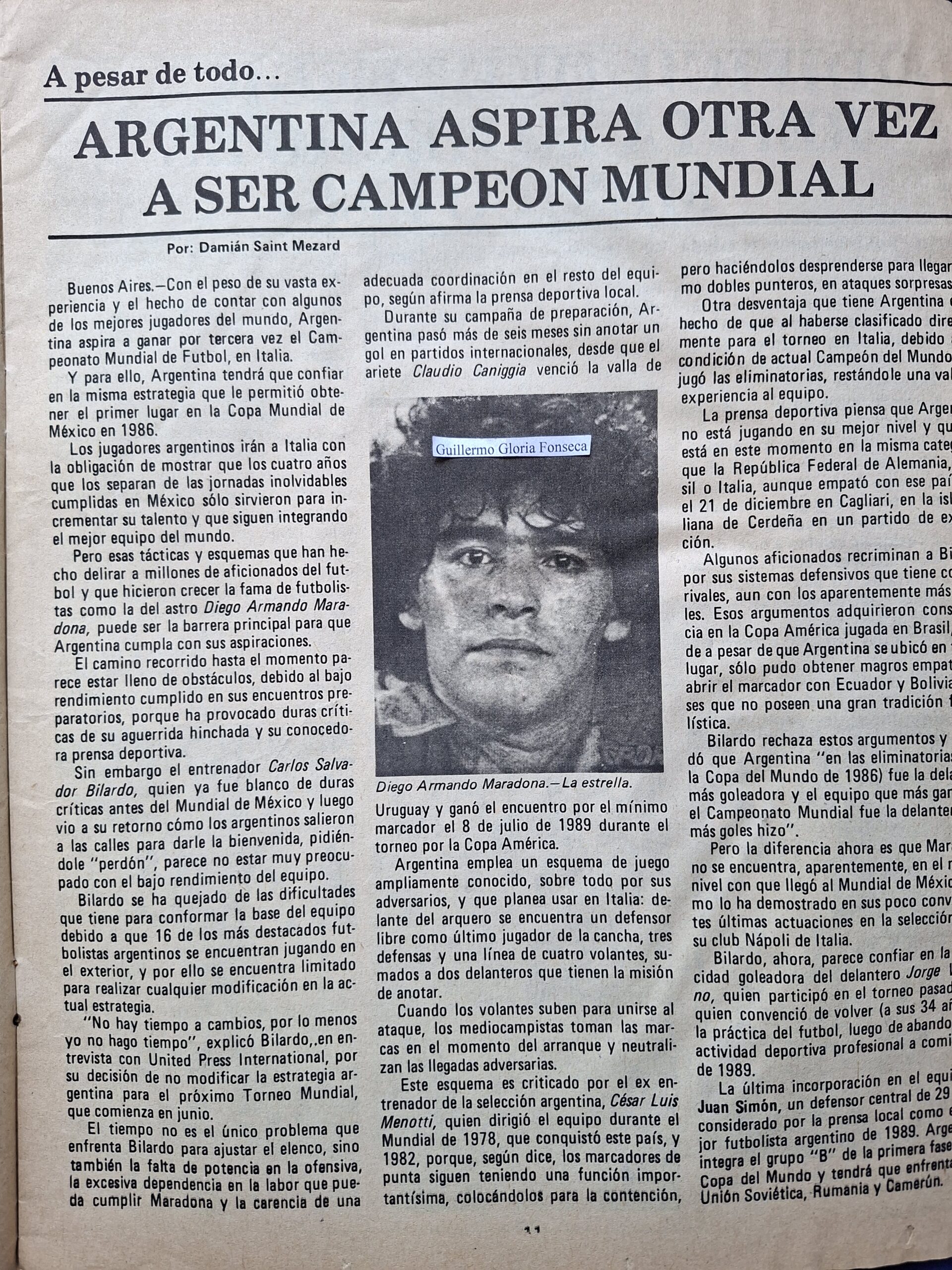 Publicado en BALON Revista N. 1363 - Año XVII - Mayo 3 de 1990